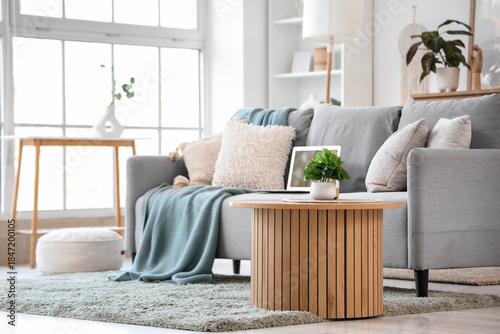 © Pixel-Shot, Fototapeta premium Plant on table near sofa in living room interior