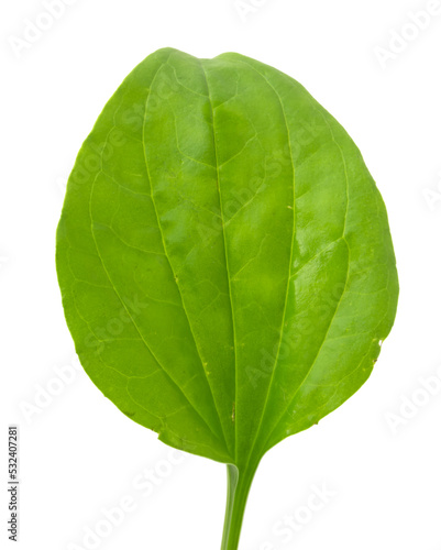 Fototapeta premium Plantain leaf, medicinal plant isolated on white background.