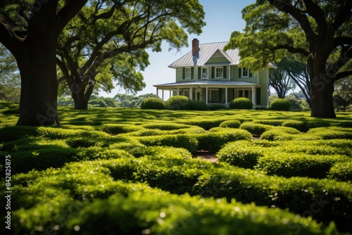 © JONATAS, Obraz premium Plantation Charm at Charleston Tea Garden., generative IA