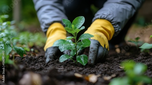 Fototapeta premium Planting a Sapling in the Garden