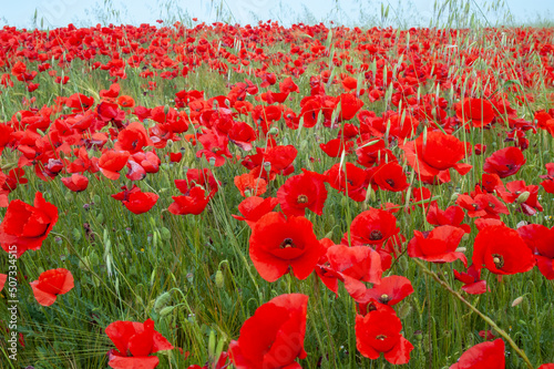 © DanielHernandezBlanc, Obraz premium planting of flowering poppies in spring