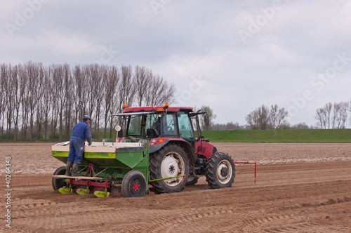 © Ruud Morijn, Fototapeta premium Planting potatoes in a Dutch field