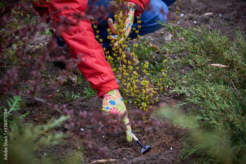 © Kulbabka, Naklejka premium Planting seedlings in the garden.