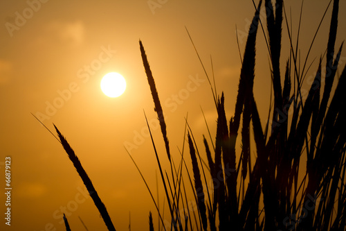 © Tobias Arhelger, Obraz premium plants in the sundown at the shoreline in holland