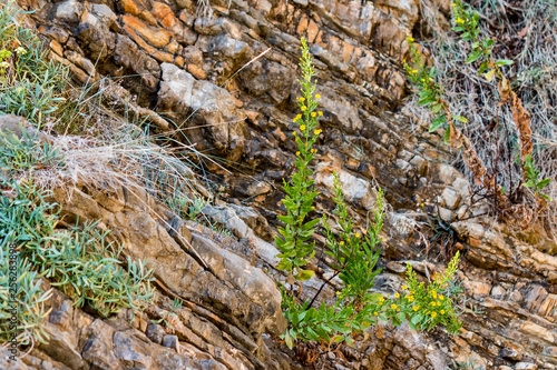 Obraz premium Plants on layered rocks