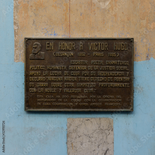 Fototapeta premium Plaque in the honor of Victor Hugo, Havana, Cuba