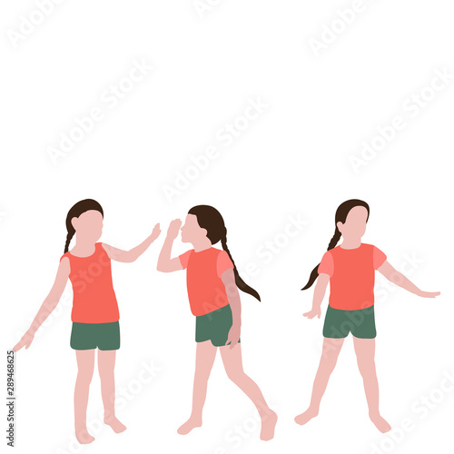 © zolotons, Naklejka premium płaski styl dziecko, mała dziewczynka gra, kolekcja