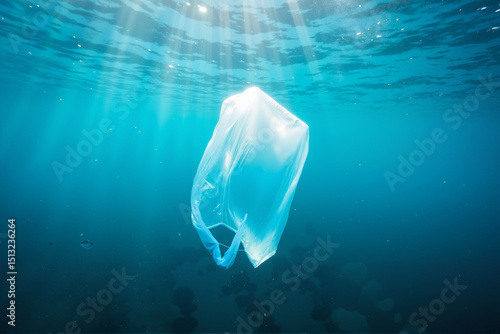 Fototapeta premium Plastic bag glowing underwater with jellyfish form