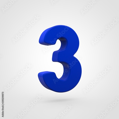 Fototapeta premium Plastic blue number 3 isolated on white background.