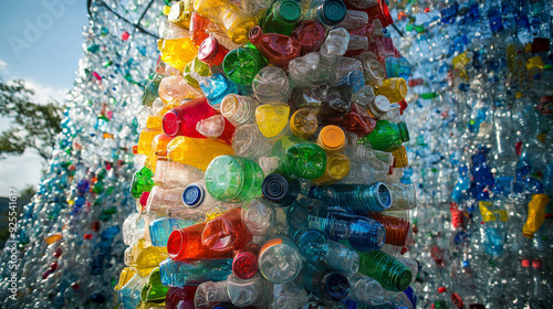 Fototapeta premium Plastic bottles can be crushed and stacked to form a tower. This helps...