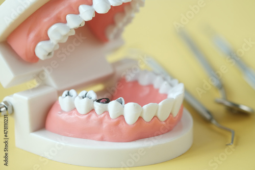 © Towfiqu Barbhuiya , Fototapeta premium plastic dental teeth model on white background