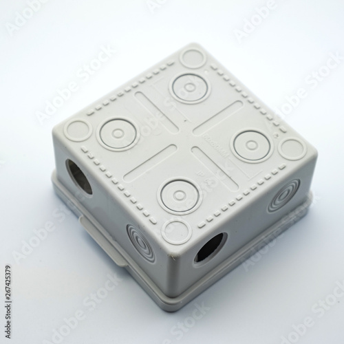 Fototapeta premium Plastic gray plastic electrical installation junction box on a white...