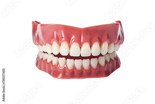 © Usama, Obraz premium Plastic Mouth With White Teeth on White Background. On a White or Clear Surface PNG Transparent Background.