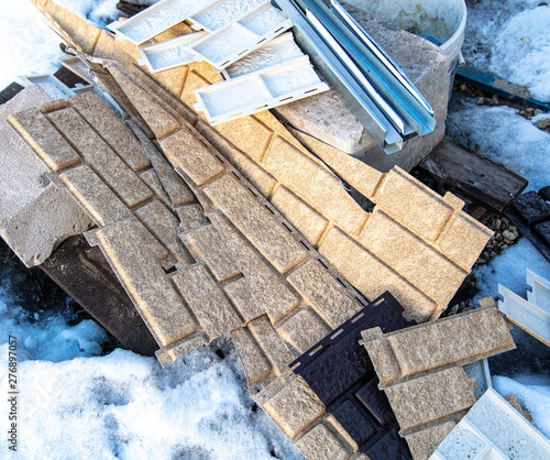 Obraz premium Plastic panels with a brick pattern in the snow