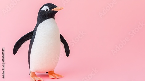 © Bonnie, Fototapeta premium Plastic penguin with flippers out on pink background