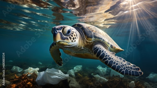 Fototapeta premium Plastic pollution in ocean environmental problem.