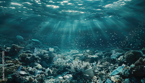 © GOLVR, Fototapeta premium Plastic Pollution on a Coral Reef
