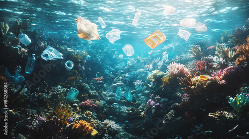 © Panida, Fototapeta premium Plastic Pollution Threatens Coral Reefs
