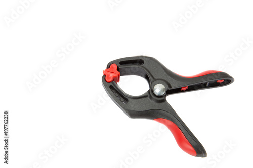 © taaree, Obraz premium Plastic spring clamp on white background, Isolated.