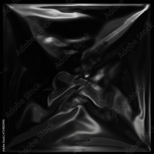 © Cursedesign, Fototapeta premium Plastic square Wrap PNG Texture : Wrinkled black plastic bag texture on a black background, ideal for creative and decorative design purposes.