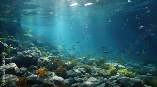 © Murtaza03ai, Fototapeta premium Plastic water bottles pollute ocean UHD Wallpaper