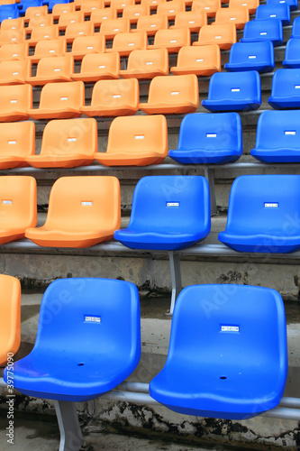 Naklejka premium plastic, yellow and blue, new chairs in stadium.