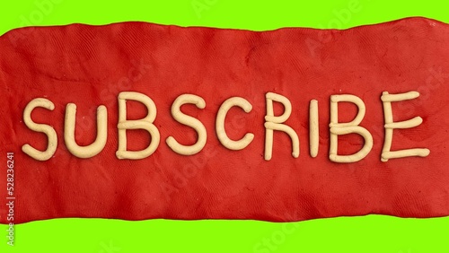 © Tigran Gasparyan, Obraz premium Plasticine red button subscribe to chroma key.