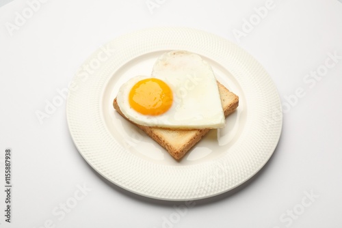 © New Africa, Fototapeta premium Plate with tasty fried egg in shape of heart and toast isolated on white
