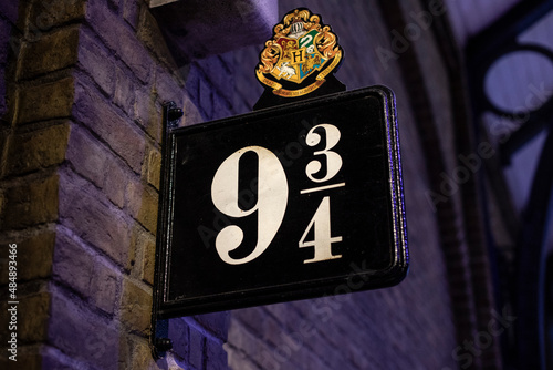 Fototapeta premium Platform 9 and Three-Quarters at the Making of Harry Potter Studio Tour, UK