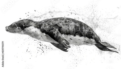 Obraz premium Platypus diving flat design side view water water color black and white