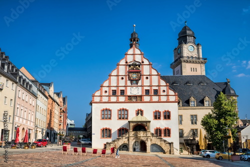 Obraz premium plauen, deutschland - marktplatz mit altem und neuen rathaus