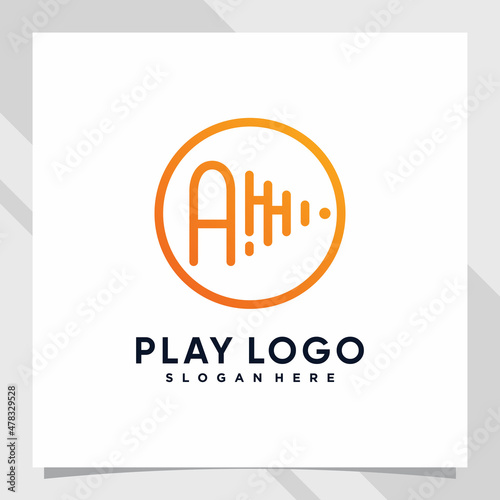 Fototapeta premium Play music logo design initial letter a with line art and creative concept