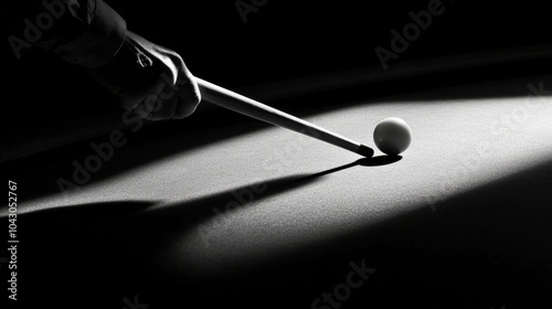 © Intach, Fototapeta premium Player shadow with a cue, making a precise shot at the billiard ball.