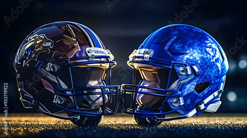 Fototapeta premium players blue football helmet