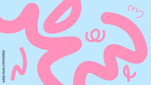© Brahim, Obraz premium Playful Abstract Background with Pink Organic Squiggle Shapes on Pastel Blue.