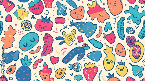 Fototapeta premium Playful Abstract Blob Shapes in Vibrant Pastel Colors and Patterns