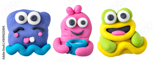 Fototapeta premium Playful and Colorful 3D Characters Made with Soft Plasticine for Relaxation...