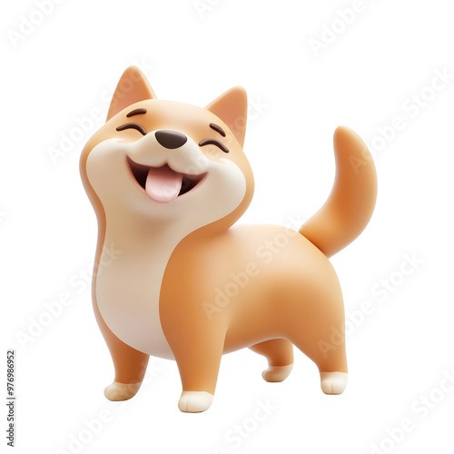 © LookChin AI, Obraz premium Playful and Happy Shiba Inu with Wagging Tail in Pastel 3D Render