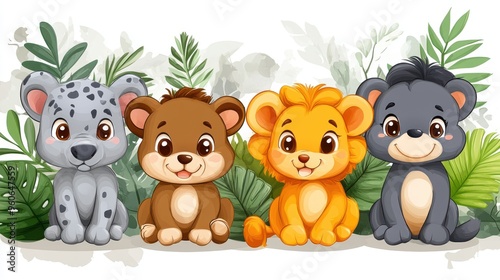 © sa-photo, Naklejka premium Playful animal clipart on white background