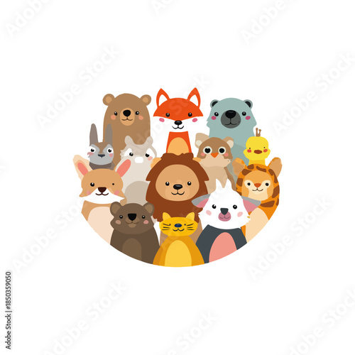 © Irfan Mulyana, Fototapeta premium Playful Animal Friends Cute Cartoon Character Collage