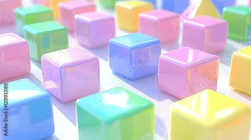 Obraz premium Playful Arrangement of Glossy Pastel Cubes Reflecting Light