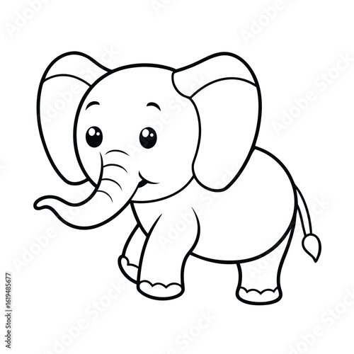 Naklejka premium Playful baby elephant bold cartoon outline cute animal vector perfect for children and wildlife art