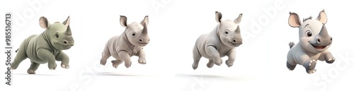 © happysunstock, Fototapeta premium Playful Baby Rhino in Cartoon Style - 3D Rendering in C4D Isolated on White Background, Generative AI