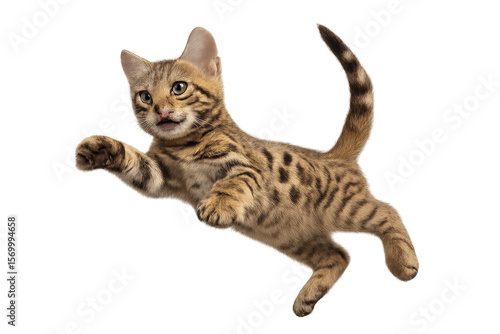 Fototapeta premium Playful Bengal kitten jumping with transparent background, full of energy