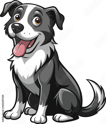 © Rasheda, Fototapeta premium Playful black-and-white dog offers a paw in greeting