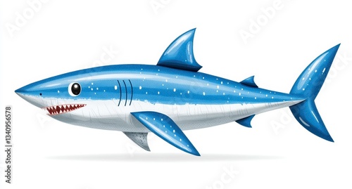 Fototapeta premium Playful Blue Cartoon Shark Illustration on White Background