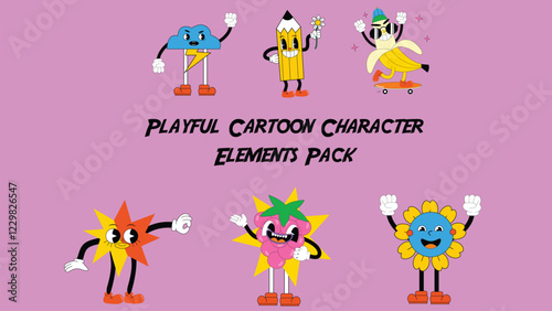 Fototapeta premium Playful Cartoon Character Elements Pack Features adorable, animated characters that add a touch of whimsy to designs.