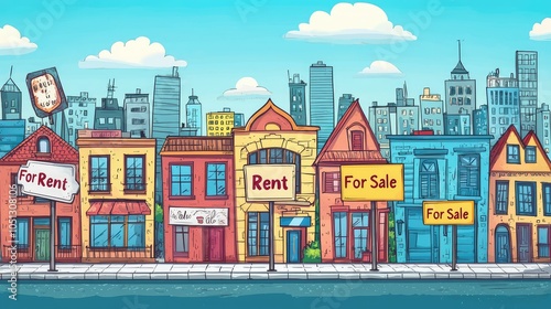 © Kitta Studio, Naklejka premium Playful Cartoon Cityscape Illustration with Signs