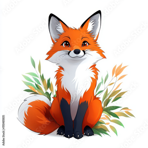 © icehawk33, Obraz premium playful cartoon fox with bushy tail and vibrant colors