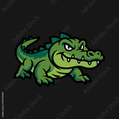 © Joni, Fototapeta premium Playful Cartoon Green Alligator or Crocodile Character in a Low Stalking Pose
